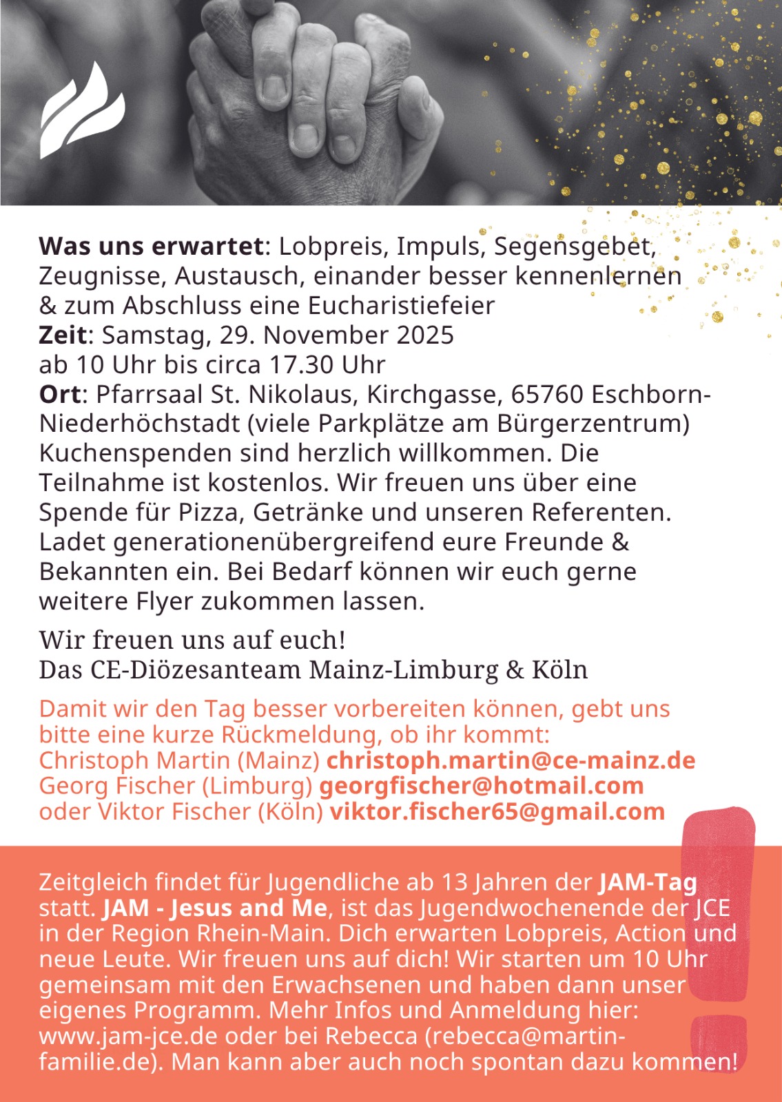 zu unserem gemeinsamer Diözesannachmittag der CE in den Diözesen Limburg, Mainz & Köln!